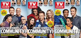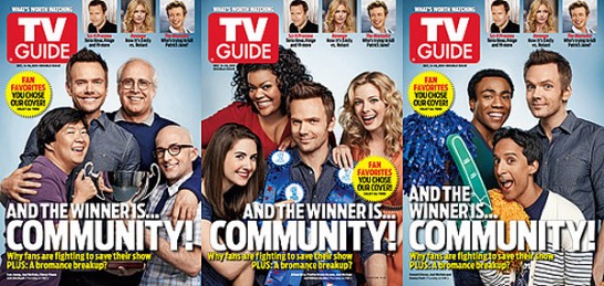Oh, and in news to thrill the heart of any fan of this greatly underrated comedy which has to be the funniest, wittiest sitcom on TV at the moment, Community was voted the Fan Favourite by TV Guide readers and made the covers…yes three different ones! It’s brilliant publicity for a show that deserves to be a lot of love, and be watched by millions more than it is!