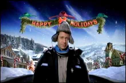 It features a Secret Santa who seems to know uncannily what each person wants for Christmas – Zoe getting an LP of The Clash’s London calling which she loves; while Alison, who loves Christmas with a passion (thanks to a spartan upbringing by scientist parents) gets pink fluffy bunny slippers like she had as a child – the return of Taggart, who while possessing the most overdone Aussie accent I have heard since The Simpsons Australian episode is over the top, engaging and full of life. He sparks up the show as he pursues his latest madcap quest – to track down the real Santa Claus who he convinced exists since he has a scrap of fireproof red cloth that was ripped off the suit of a man he saw near his Christmas tree as a child. He equips himself for his festive hunt with holographic reindeer, his own powerful sleigh (that is instrumental in saving the day as he and Carter go aloft to do what needs to be done to once again save Eureka), and a miniaturising ray that he believes explains how Santa can carry all those presents for all the kids in the world.